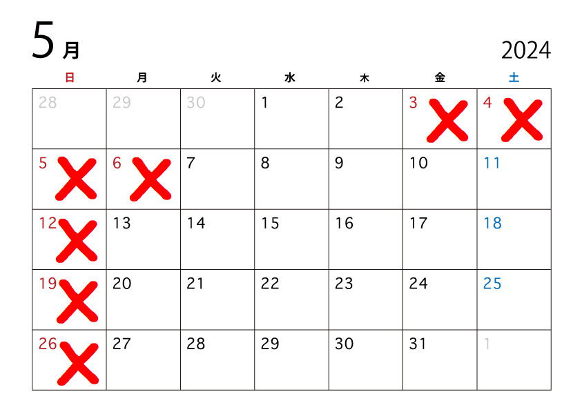 連休の前後はご予約が取りにくくご不便をお掛けいたします。