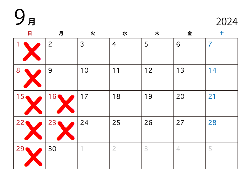 今月は祝日があるため、ご希望日時が決まっている方は早めのご予約をおすすめします。