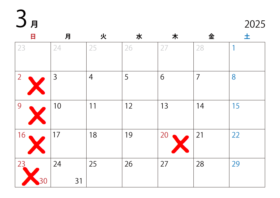 - 3月のお休みのご案内