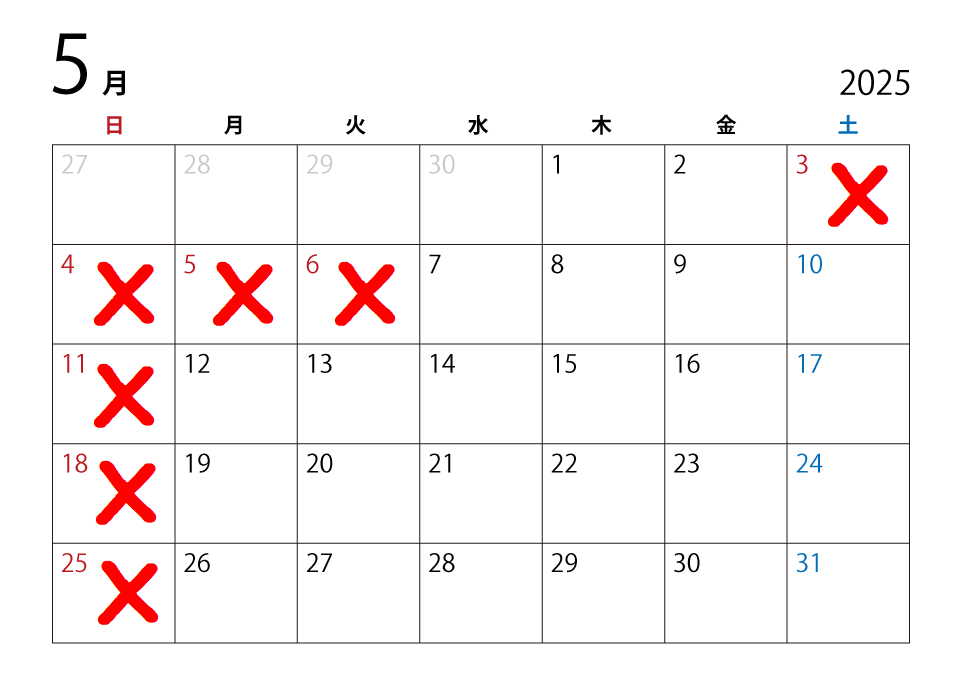 5月のお休みをお知らせさせていただきます。