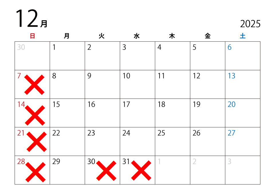 年内は12月29日まで、また年始は1月5日より営業させて頂きます。