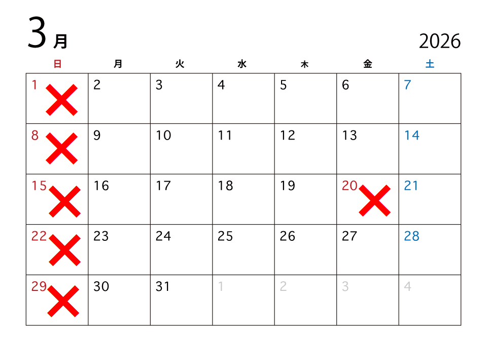 - 3月のお休みのご案内